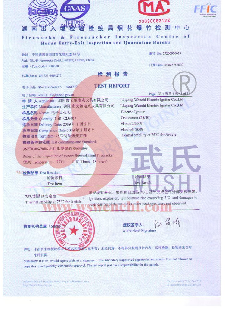 瀏陽(yáng)市文馳電點(diǎn)火具有限公司(原培文電子點(diǎn)火器材廠),創(chuàng)建于1998年,是一家專業(yè)從事研制銷售電子點(diǎn)火產(chǎn)品的民營(yíng)科技企業(yè),是我國(guó)第1枚煙花用電點(diǎn)火頭生產(chǎn)者,是《煙花爆竹電點(diǎn)火頭國(guó)標(biāo)》牽頭起草單位。公司位于中國(guó)“煙花之鄉(xiāng)”湖南省瀏陽(yáng)市,地理位置優(yōu)越,交通便利。 我公司研制的對(duì)象是用電能引燃火藥、做機(jī)械功等預(yù)定功能的一次性使用的元件或裝置,包括電點(diǎn)火頭(英文名ElectricMatch or Electric Igniter,中文俗稱“電火柴”或“電發(fā)火頭”)、電點(diǎn)火管和延期電點(diǎn)火管;我們估且在以后的產(chǎn)品技術(shù)欄中將我們研究的產(chǎn)品統(tǒng)稱為電點(diǎn)火具,將電點(diǎn)火器看成是用于提供和控制供給電點(diǎn)火元件點(diǎn)火的電能器材;我們研究的電點(diǎn)火橋路有橋絲式、無(wú)橋絲···